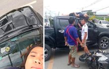 Kawasaki Z1000 Tabrak Toyota Hilux, Boncenger Mental ke Atap, Eh Kok Sempat Selfie?