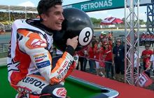 Begini selebrasi Marc Marquez usai memenangkan gelar ke-8-nya di MotoGP Thailand 2019, pakai permainan biliar sob.