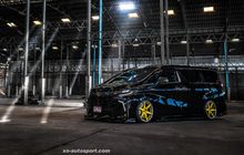 Modifikasi Toyota Alphard yang dibuat merunduk dan agresif serta pelek emas membuatnya jadi lebih mencolok