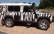 Modifikasi unik yang menimpa sebuah Land Rover Defender lawas yang diubah tampil unik pakai kelir corak zebra