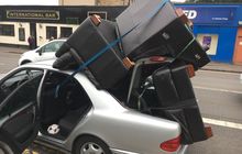 Polisi menghentikan laju sebuah mobil sedan di kota Glasgow, Skotlandia, dikarenakan pada atap mobil tersebut terlihat tumpukan sofa yang diikat.