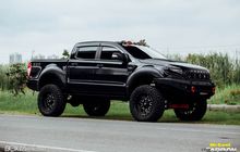 Modifikasi pikap Ford Ranger dengan tampilan gagah yang dibungkus warna serba hitam dan kaki-kaki jinjit, simak ulasannya