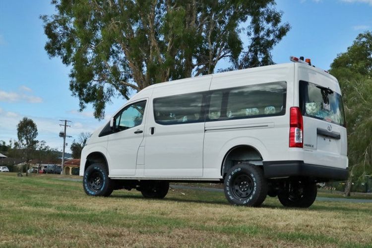 Modifikasi Toyota HiAce terbaru yang diubah jadi lebih gagah dan siap main tanah berkat ubahan jadi penggerak 4x4