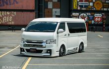 Modifikasi Toyota HiAce lama yang diubah jadi tampil gaya dengan body kit custom kaki-kaki merunduk dan ada part Toyota Fortuner