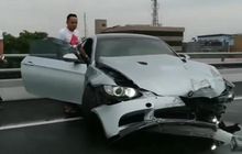 Sayang Banget! BMW M3 Selip Lalu Nabrak Pagar Pembatas di Tol