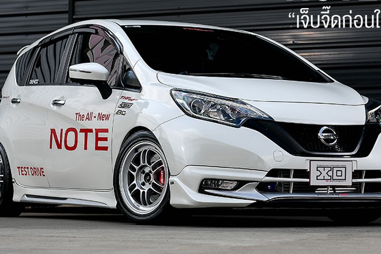 Modifikasi Nissan Note e-Power yang diubah tampil racing berkat body kit baru dan pelek Enkei, simak ubahannya