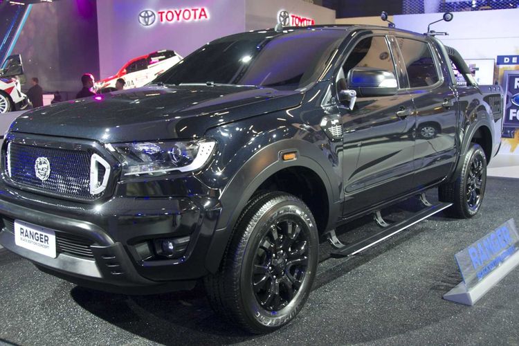 Modifikasi pikap Ford Ranger yang diubah tampil lebih gahar dengan nuansa serba hitam dan siap angkut moge nih sob