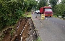 Dinding penahan tanah (DPT) di wilayah Jalan Nusantara, Bangli, Bali, jebol hingga puluhan meter pada Jumat (21/02/2020).
