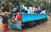 Truk Satpol PP dan Traktor Difungsikan Membantu Warga Melintasi Banjir di Jakarta Barat