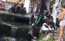 Viral di Instagram video seorang bule yang mengendarai Honda Scoopy tercebur di kali Jalan Raya Canggu, Denpasar, Bali, Sabtu (22/2/2020)