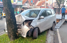 Ngeri! Pengemudi Daihatsu Sigra Menghantam Pohon, Mobil Rusak Berat
