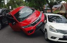 Enggak Terima Disalip, Honda Jazz Balas Ngebut! Eh, Endingnya Malah 'Nyender' di Nissan Grand Livina yang Lagi Parkir