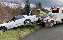 Sebuah mobil terjebak di semak-semak setelah terlibat pengejaran dengan polisi karena mengajari anjingnya berkendara.