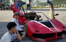 Sekelompok mahasiswa berhasil merakit Ferrari KW bermodalkan kardus dan menghabiskan dana Rp 1,5 juta
