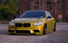 BMW Seri 5 F10 Bergaya VIP Pakai Jubah Mencolok Plus Kaki Mepet Aspal