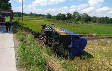 Mau Menyalip Kendaraan di Depannya, Mitsubishi Colt Diesel Malah Terguling Nyungsep di Sawah