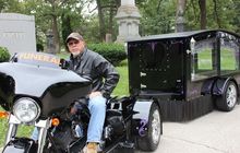 Gimana jadinya kalau moge Harley-Davidson yang gahar dipakai untuk mengatar jenazah? Adalah pria Amerika satu ini yang melakukannya.