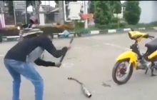 Beredar Video Pengendara Motor Menghancurkan Knalpot Brong Miliknya, Begini Kata Polisi