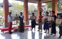 Team Bali MX membagikan masker kepada warga desa serta melakukan penyemprotan disinfektan keliling di Desa Sempidi, Badung