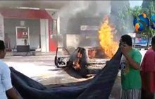 Mazda MR90 terbakar di SPBU Sotaber, Kecamatan Pasean, Pamekasan, Madura, Rabu (22/07/2020). Korsleting diduga jadi penyebabnya.