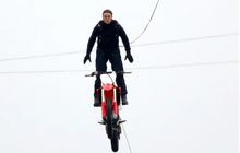 Tanpa pemeran pengganti (stuntmen), Tom Cruise terjun payung dengan motor trail saat syuting film Mission Impossible 7