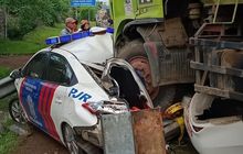Sebuah mobil polisi patroli jalan raya (PJR) 'rontok' dihantam trukdi Jalan Tol Jakarta-Merak, Minggu (1/11/2020). Begini kronologinya