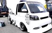 Sentuhan modifikasi yang diberikan pikap Daihatsu Hijet ini bisa tergolong ekstrem, pasang 8 lubang knalpot sekaligus