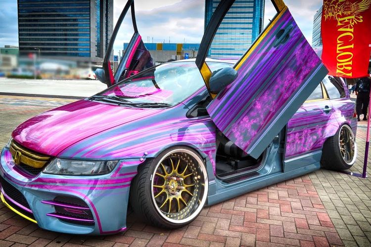 Honda Odyssey satu ini justru dimodifikasi dengan tampilan ekstrem dengan balutan airbrush dan aplikasi pintu gunting