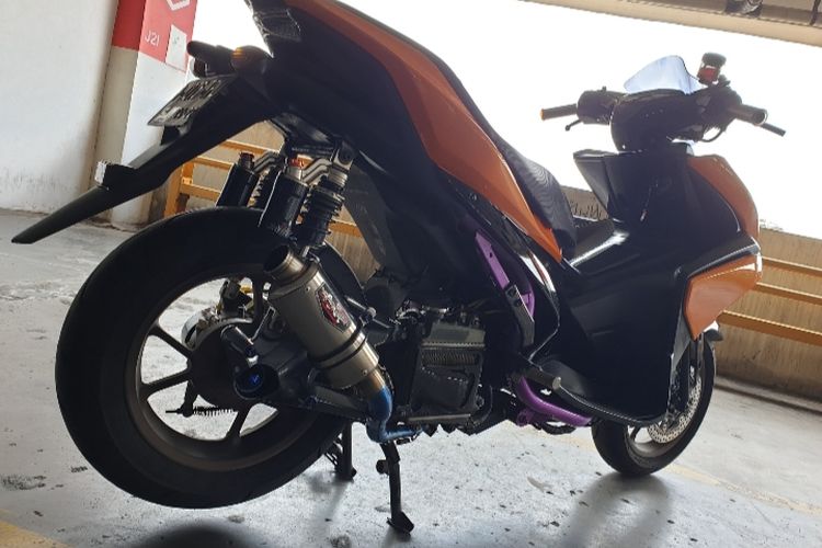 Yamaha Aerox tampil kekinian, kaki-kaki dan pengereman kece bertabur part racing.
