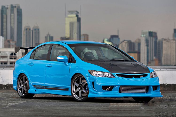 Honda Civic FD Agresif Bergaya Street Racing Ditopang Pelek TE37