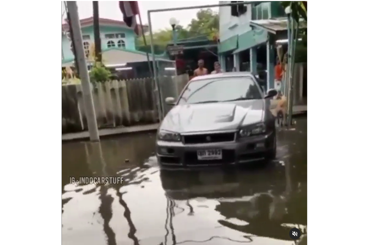 Netizen dibuat geregetan melihat Nissan Skyline GT-R digunakan untuk menerobos banjir yang diperkirakan terjadi di Thailand