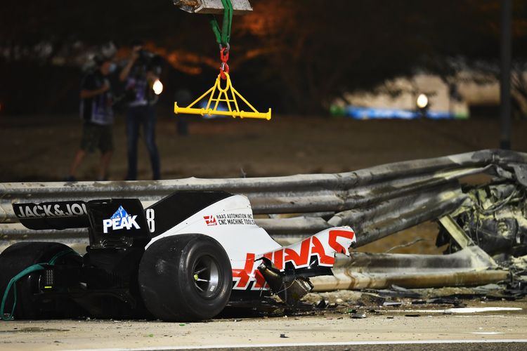 Crash Romain Grosjean di Bahrain lalu menjadi momen paling menggemparkan di F1 2020, ada animasi reka ulang detailnya.