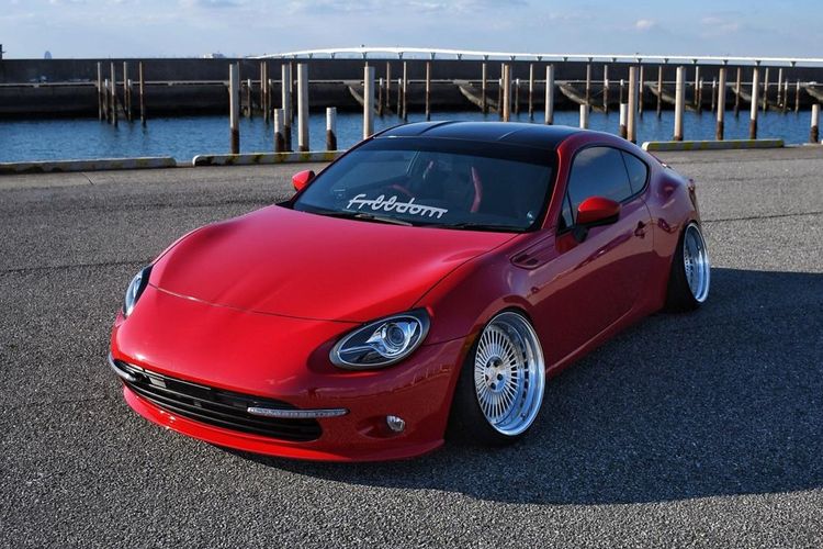 Sportscar berkelir merah ini adalah Toyota 86 yang sudah melakukan operasi platik di bagian wajahnya menyerupai tampang Jaguar E-Type