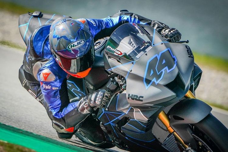 Pembalap tim Repsol Honda, Pol Espargaro jajal replika motor MotoGP Honda RC213V-S di sirkuit Barcelona beberapa hari lalu.