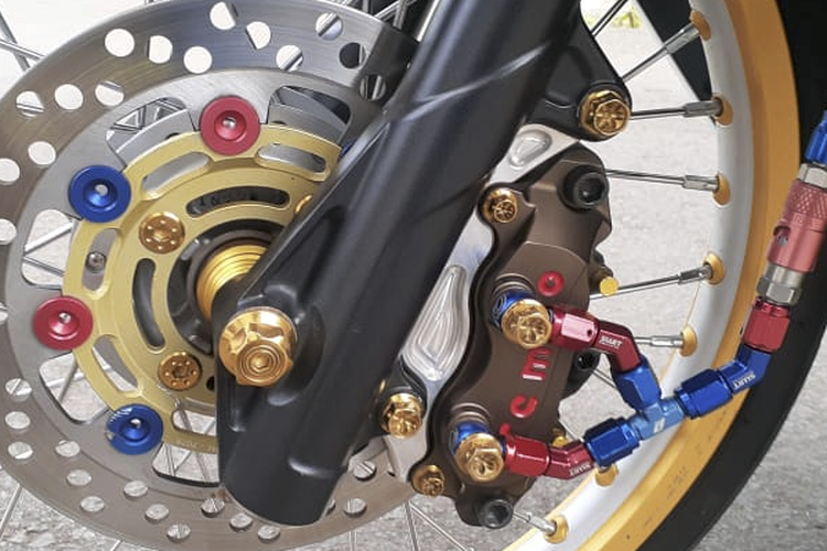 Ubahan kaki-kaki Honda PCX150 unik, pasang selang rem bentuknya sesuai selera hati.