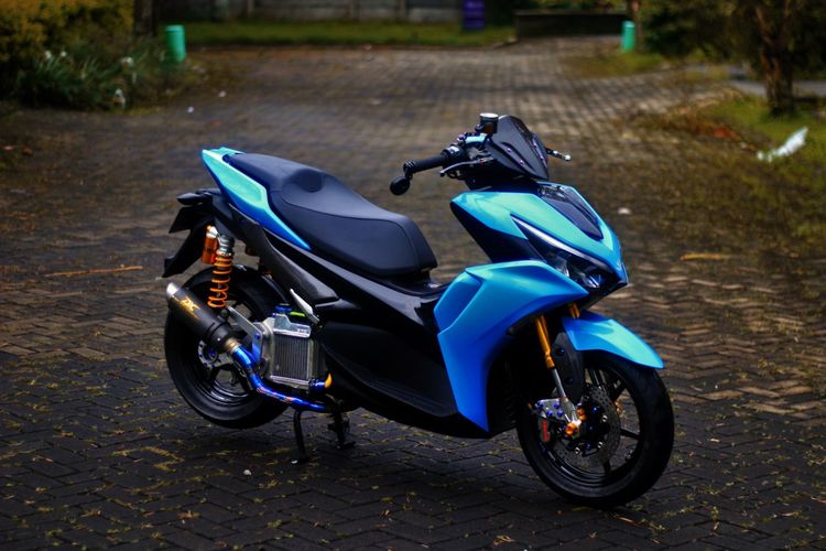 Yamaha Aerox 155 VVA Connected milik Andri Ariyanto ini mendapat modifikasi yang begitu impresif hingga tampangnya makin menawan.