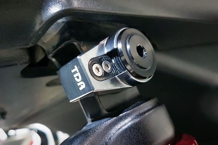 Cegah niat jahat pelaku pencurian sokbreker, caranya bisa dengan pasang pengunci khusus untuk sok belakang di motor.