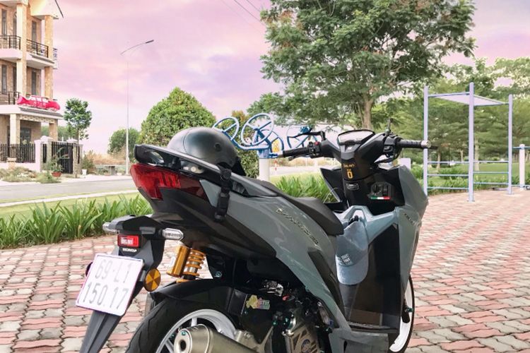 Honda Vario 150 ini mendapatkan modifikasi yang begitu impresif, terutama di warna bodi dan kaki-kakinya.
