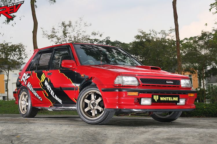 Modifikasi Toyota Starlet kotak yang datang dari Singapura dengan tampilan agresif berkat sentuhan di eksterior dan kaki-kaki.