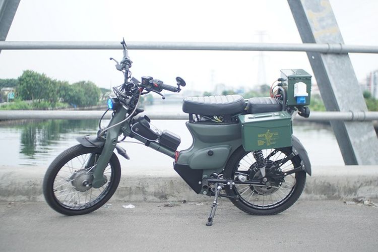 bikers satu ini membuat Honda C70 listrik dengan baterai yang diambil dari baterai kamera dan laptop bekas.