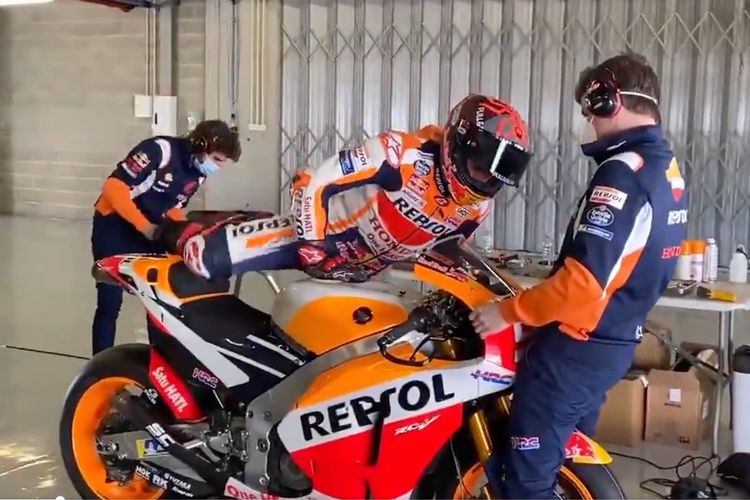 Marc Marquez kembali melanjutkan latihannya di atas motor, kali ini dengan RC213V-S lagi tapi di Portimao.