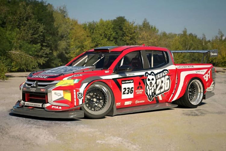 Modifikasi digital Mitsubishi Triton baru dengan konsep mobil balap drifting yang dipersembahkan untuk Rifat Sungkar