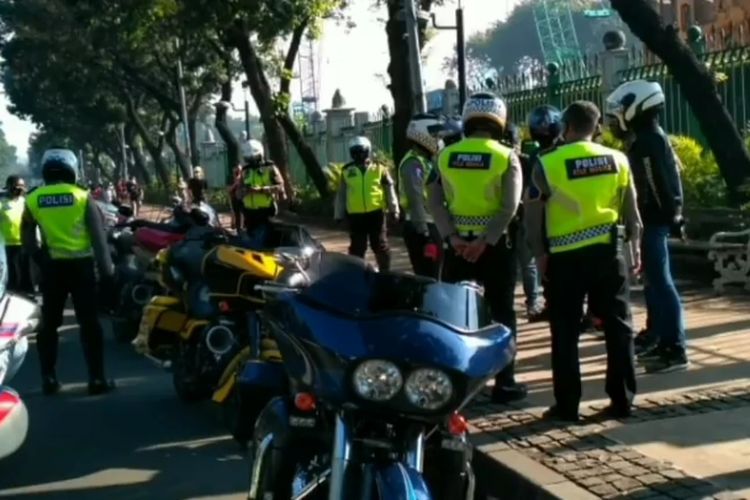 Satpatwal Polda Metro Jaya melalui akun Instagram-nya mengunggah foto anggotanya saat menertibkan pengendara sepeda motor Harley-Davidson