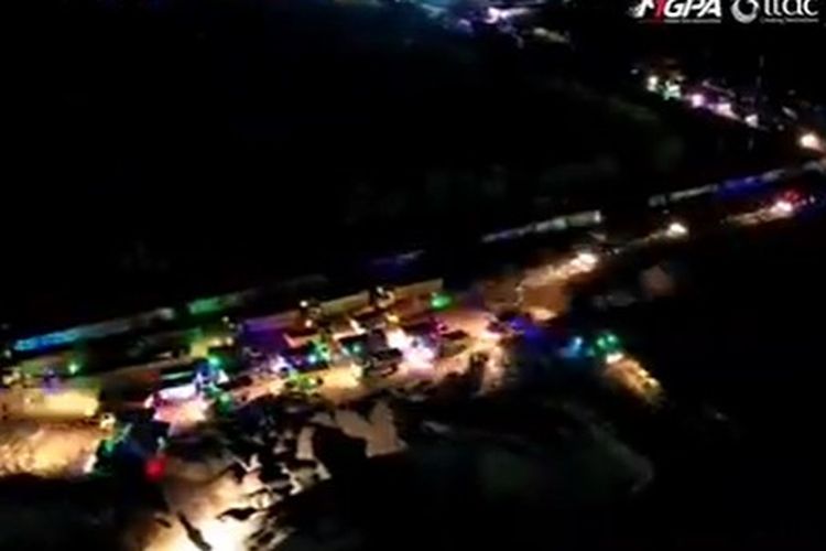 Proyek sirkuit Mandalika di Lombok, Nusa Tenggara Barat terus dikebut dan dikerjakan hingga malam hari oleh para pekerja.