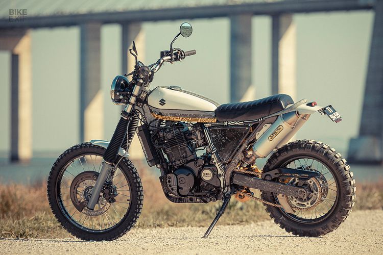 Unik Edition Custom Motorcycles merombak Suzuki DR 800 S Big menjadi scrambler yang begitu keren dan gagah.