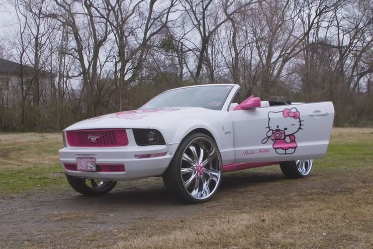 Modifikasi Ford Mustang tak melulu garang, yang satu ini justru disematkan karakter feminim dan imut bertema Hello Kitty.