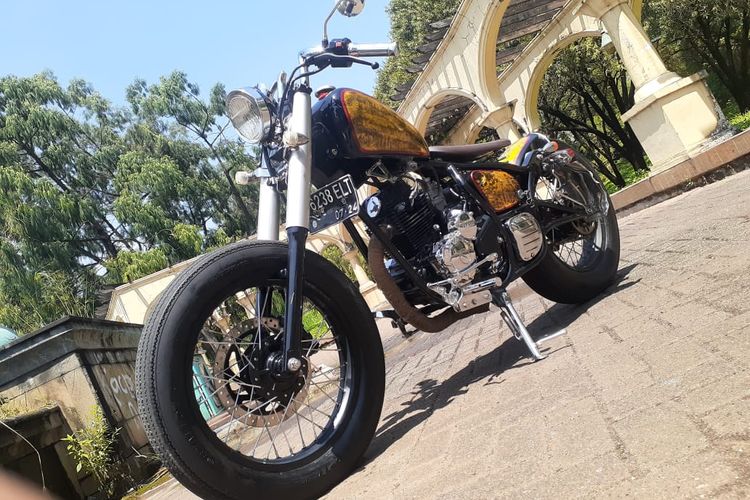 Templok kaki-kaki garang bobber basis Yamaha Scorpio tampil maskulin.