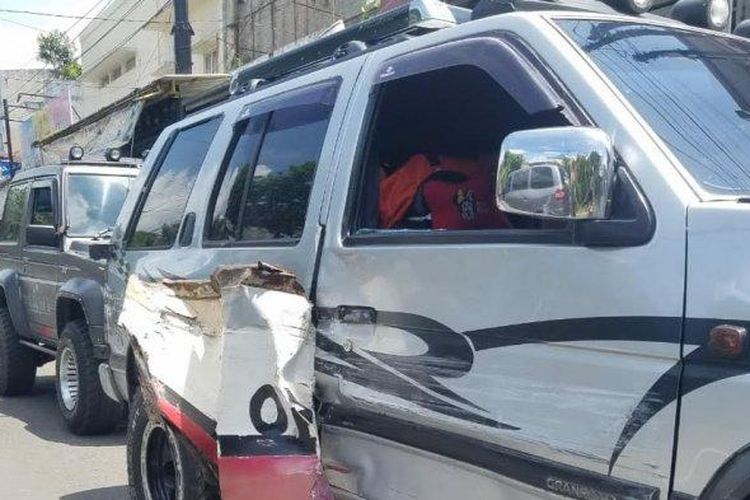 Alami Microsleep, Sopir Angkot Serempet Nissan Terrano Sampai Pintunya Copot, Baru Bangun Setelah Tabrak Counter HP