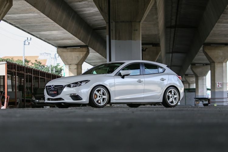 Modifikasi Mazda3 berkelir putih ini sekilas tampak minimalis kalem dari penampilan luar, namun aura racing kental di kabinnya