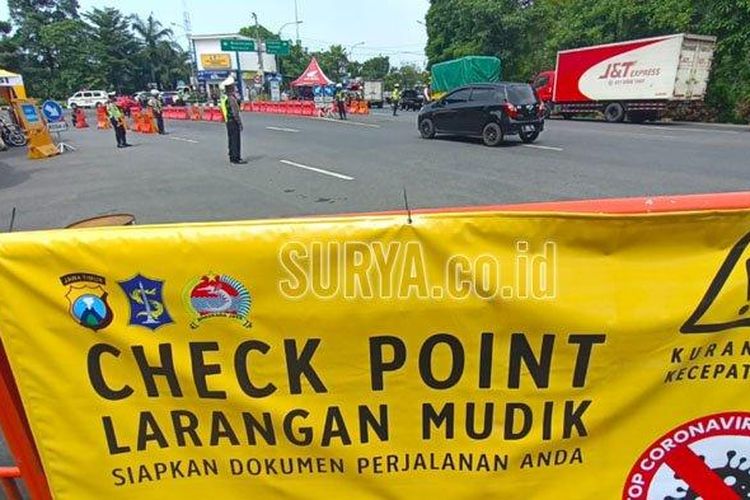 Minimalisir pemudik dari luar daerah, Ditlantas Polda Jatim bersama Satlantas Polrestabes Surabaya perketat penjagaan di check point Bundaran Waru.